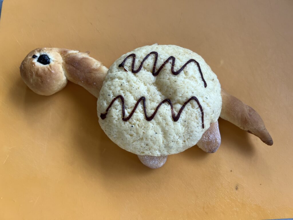 目が黒豆で、メロンパンの部分にカスタードクリーム入り。見た目も可愛いいと喜んで食べてくれていました✌️