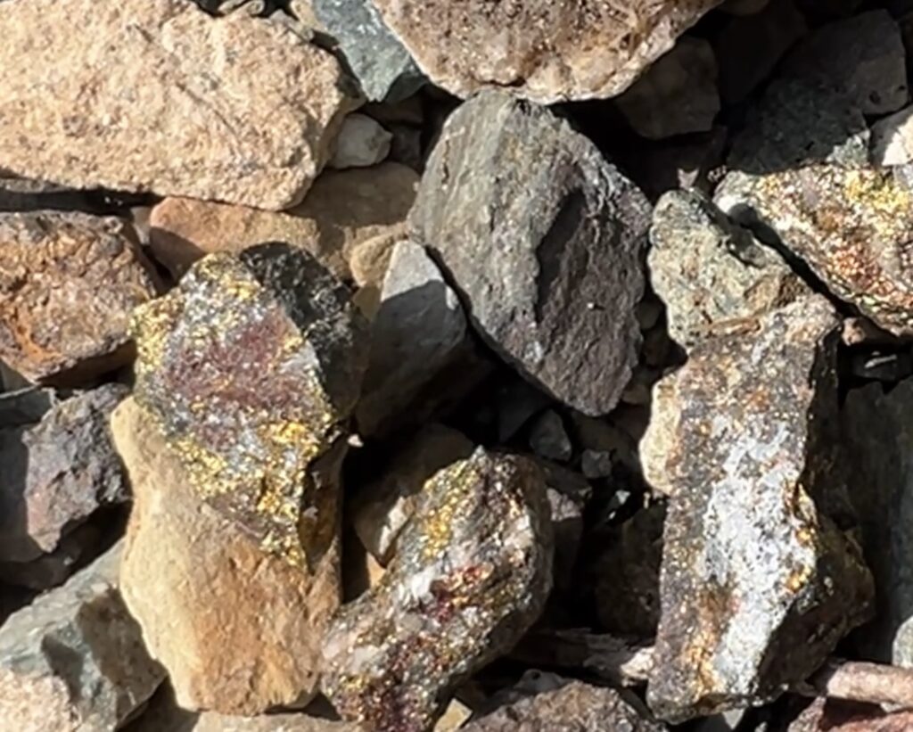 沢山の石たちに目を向けて歩いていると、すぐに飛び込んできました。黄銅鉱2cmくらいのものはあちこちに転がっていました。