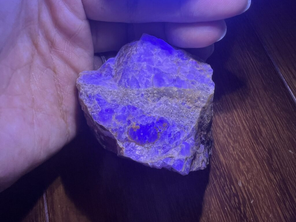 帰ってから、石の本を見ながら持ち帰った石たちを調べていて、ダメもとで石たちにネイル用のUVライトを当ててみたところ、2個も青く光る石が!